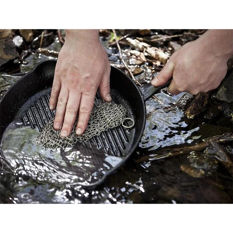 Accessoire pratique pour nettoyer les faitouts sans détergent. Fabriqué en acier inoxydable. Mesure 20 x 20 cm.