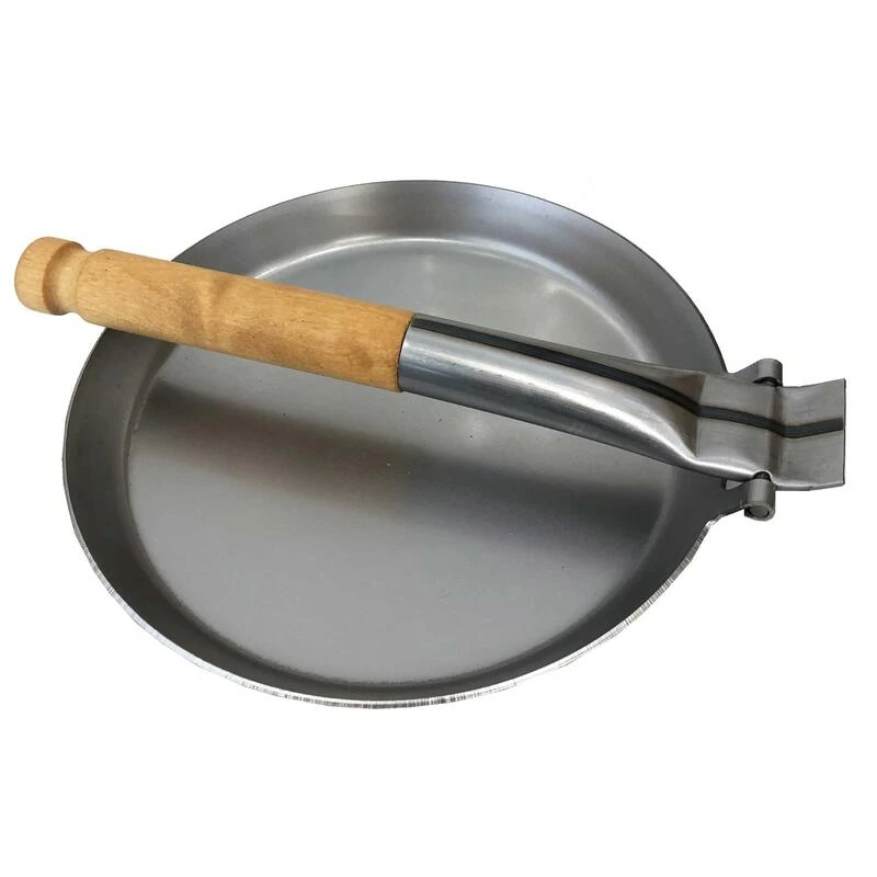 Cette poêle en acier élégant avec une poignée en bois pliable prend peu de place et est parfaite pour une utilisation sur un feu ouvert !